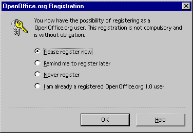 OpenOffice.org features a mechanism for online product registration. Thus, any vendor who creates his own, branded version from OpenOffice.org can allow his users to register their product copy. This feature is optional, and is disabled in the normal OpenOffice.org builds, but can be easily enabled by just changing a configuration entry.